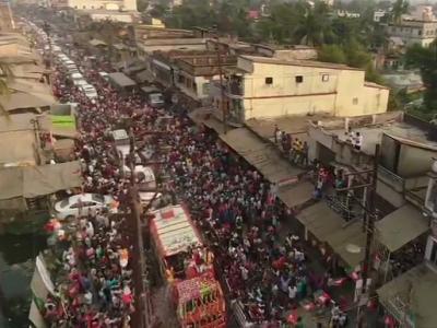 केंद्रीय गृहमंत्री अमित शाह दोन दिवसांच्या पश्चिम बंगाल दौऱ्यावर आहेत. येथे त्यांनी राज्याच्या मुख्यमंत्री ममता बॅनर्जींवर (Mamata Banerjee) देवी पूजेसह अनेक मुद्द्यांवर निशाणा साधला. शाह यांनी कोलकात्याजवळील दक्षीण 24 परगना जिल्ह्यात (South 24 Parganas) रॅली केली. (सर्व फोटो - ANI/Twiter)