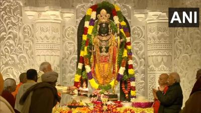 पंतप्रधान नरेंद्र मोदी यांनी शुभ मुहूर्तावर राम ललाचा अभिषेक केला. यानंतर अयोध्या जय श्री रामच्या घोषणांनी दुमदुमली. यानंतर राम मंदिर परिसरात हेलिकॉप्टरमधून पुष्पवृष्टी करण्यात आली.