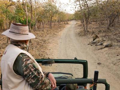 खुल्या जिप्सीमध्ये गीर अभयारण्याला भेट देताना पंतप्रधान मोदींनी सिंहांचे फोटो काढले. जेव्हा सूर्याची पहिली किरणे पडली त्याआधीच पंतप्रधान मोदी तिथे पोहोचले होते.