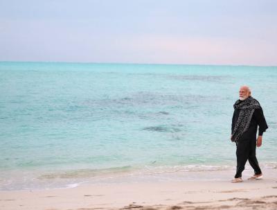 पंतप्रधान नरेंद्र मोदी मंगळवार आणि बुधवारी तामिळनाडू, केरळ आणि लक्षद्वीपच्या दौऱ्यावर होते. यावेळी त्यांनी लक्षद्वीपमधील समुद्र किनाऱ्यावर फेरफटका मारला.