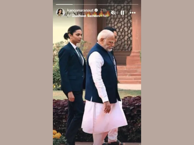 हा फोटो तुम्हीही बघितला असेल, ज्यात पंतप्रधान नरेंद्र मोदी यांच्यासोबत एक महिला अधिकारी दिसत आहे. हा फोटो भाजपच्या खासदार कंगना रणौत यांनीही शेअर केला आहे.