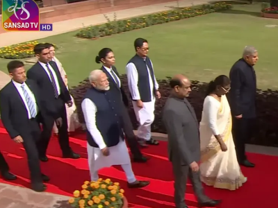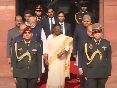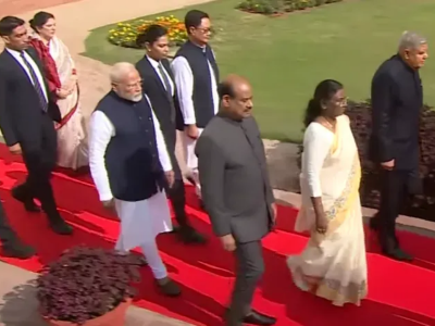जेव्हा हे सगळे कार्यक्रमासाठी सभागृहात जात होते. तेव्हा महिला अधिकारी राष्ट्रपतींच्या मागे चालत आहे. ही महिला पंतप्रधानांच्या बाजूला असून, मंत्री किरण रिजिजू दिसत आहेत. व्हायरल फोटो वेगळ्या बाजूने घेतला असल्यामुळे पंतप्रधान मोदी, किरण रिजिजू आणि महिला अधिकारी दिसत आहेत आणि बाकीचे लोक दिसत नाही.
