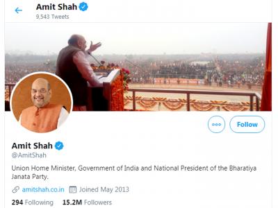 केंद्रीय गृहमंत्री अमित शाह1 कोटी 52 लाख फॉलोअर्ससोबत तिसऱ्या स्थानी आहेत.