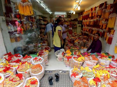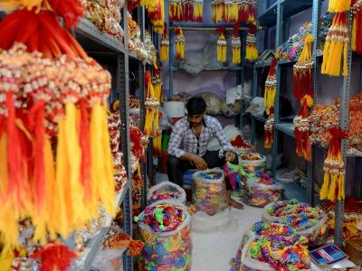 रक्षाबंधनासाठी दुकानात तयारी करणारा विक्रेता