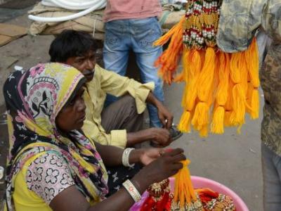 नवी दिल्ली येथे रस्त्यांवर राखी विकणारी महिला विक्रेता