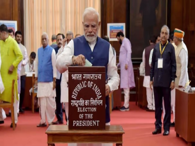 पंतप्रधान नरेंद्र मोदी यांच्यासह अनेक दिग्गज नेत्यांनी राष्ट्रपतीपदाच्या निवडणुकीत मतदान केले आहे. पंतप्रधान नरेंद्र मोदी यांनी संसद भवनात पोहोचून राष्ट्रपतीपदाच्या निवडणुकीत मतदान केले. फोटोही त्यांनी सोशल मीडियावर शेअर केला आहे.