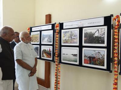 ओखी वादळामुळे कन्याकुमारी येथे झालेल्या नुकसानीची पाहणी करतान पंतप्रधान नरेंद्र मोदी.