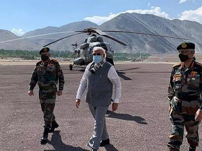 पंतप्रधान नरेंद्र मोदी चीन सीमेवर तैनात असलेल्या जवानांची हिंमत वाढवण्यासाठी, कुठल्याही प्रकारची पूर्व सूचना न देता, अगदी अचानकपणे, शुक्रवारी सकाळी लेहपासून साधारणपणे 25 किलो मीटर अंतरावर असलेल्या न्योमा येथे पोहोचले. यावेळी पंतप्रधान मोदींसोबत चीफ ऑफ डिफेंस स्टाफ (सीडीएस) जनरल बिपिन रावत आणि लष्कर प्रमुख जनरल मनोज मुकुंद नरवणेदेखील उपस्थित होते.