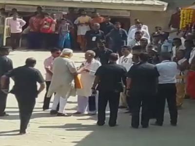 द्वारकाधीश मंदिरात पूजा करून बाहेर आल्यावर मोदींनी त्यांचा जुना मित्र हरी भाऊ यांची भेट घेतली