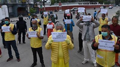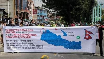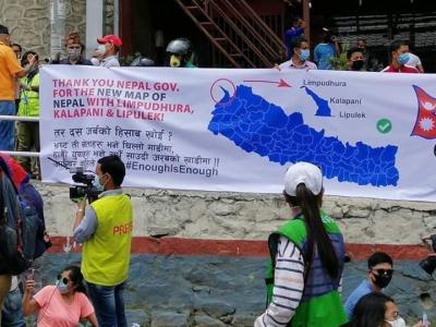 त्यामुळे शनिवारी सकाळपासूनच या नकाशाविरोधात काठमांडूच्या रस्त्यावर निदर्शने सुरू होती. याआधी शुक्रवारीही बरेच निदर्शक सरकारच्या विरोधात रस्त्यावर उतरले. त्यानंतर नेपाळचे परराष्ट्रमंत्री प्रदीप ग्यावली यांनी शुक्रवारी रात्री माध्यमांद्वारे लोकांना हे प्रदर्शन थांबवावे असे आवाहन केले.