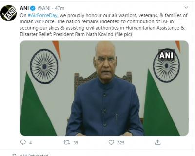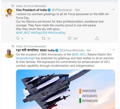 पंतप्रधान नरेंद्र मोदींसह राष्ट्रपती रामनाथ कोविंद आणि उपराष्ट्रपती वैंकय्या नायडूंनीही हवाई दलाला शुभेच्छा दिल्या आहेत. भारतीय हवाई दलाचा अभिमान असल्याचं वैंकय्या नायडूंनी म्हटलंय.