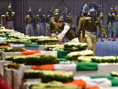 काँग्रेस अध्यक्ष राहुल गांधी यांनीही शुक्रवारी रात्री नवी दिल्लीमध्ये शहीद जवानांना आदरांजली वाहत अभिवादन केले.