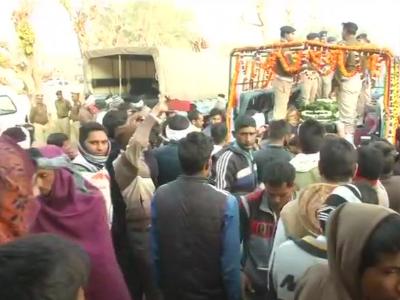 राजस्थानमधील सीआरपीएफ जवान रोहितास लांबा यांना अखेरचा निरोप देण्यासाठी लोटलेला जनसमूदाय