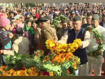 सीआरपीएफ जवान मोहन लाल यांना अभिवादन करतान उत्तराखंडचे मुख्यमंत्री त्रिवेंद्र सिंह रावत