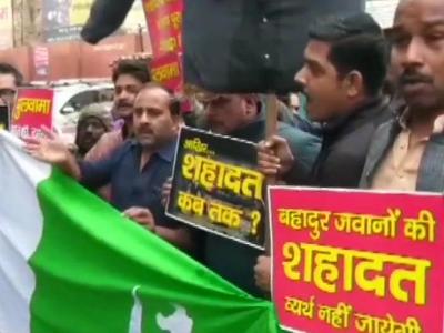 Pulwama Attack : देशभरात हल्ल्याचा निषेध, पाकिस्तानचे झेंडे जाळले
