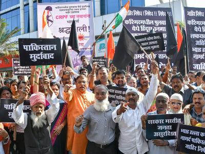 जम्मू-काश्मीरमधील पुलवामा दहशतवादी हल्ल्याचा देशभरात तीव्र निषेध नोंदवण्यात येत आहे. औरंगाबादमधील बेगमपुरा परिसरात निदर्शनं करणाऱ्यांनी पाकिस्तानचे झेंडे जाळले.