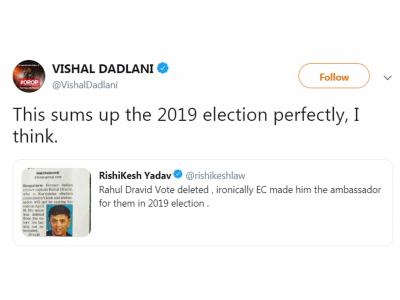 संगीतकार विशाल ददलानी यांनीही ट्विट करुन निवडणूक आयोगाकडे बोट दर्शवले, मला वाटतं येथे 2019 ची संपूर्ण निवडणूकच दिसत आहे, असे दललानी यांनी लिहिलं आहे.