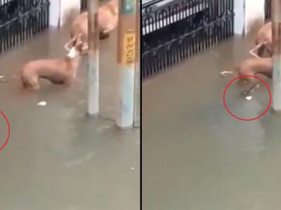 वडोदरामध्ये पुराच्या पाण्यात नागरी वस्तीत मगर आढळल्याने स्थानिकांमध्ये घबराट पसरली आहे. या मगरीने वस्तीत पुराच्या पाण्यात असणाऱ्या कुत्र्यावर झडप घातली पण कुत्रा थोडक्यात बचावला.