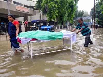 तसेच पुराच्या पाण्यातून बाहेर काढण्यासाठी पोलिसही सज्ज आहे. एक महिन्याच्या मुलीला पोलीस निरीक्षक जी. के चावडा यांनी डोक्यावर टोपली घेऊन खांद्यापर्यंतच्या पाण्यातून बाहेर काढले याचं कौतुकही होताना पाहायला मिळत आहे.