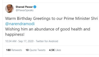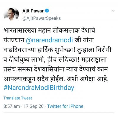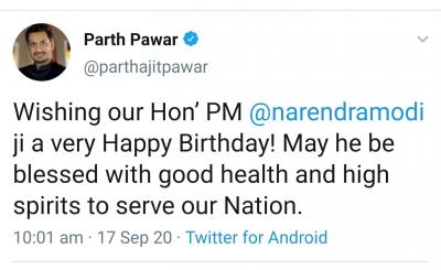 पार्थ पवार यांनीही मोदींना आवर्जून शुभेच्छा दिल्या आहेत.