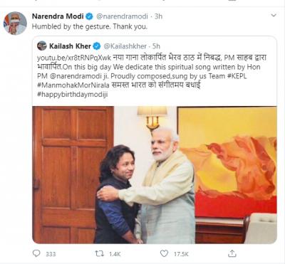 गायक कैलास खेरनेही शुभेच्छा दिल्या असून मोदींनी आभार मानले आहेत.