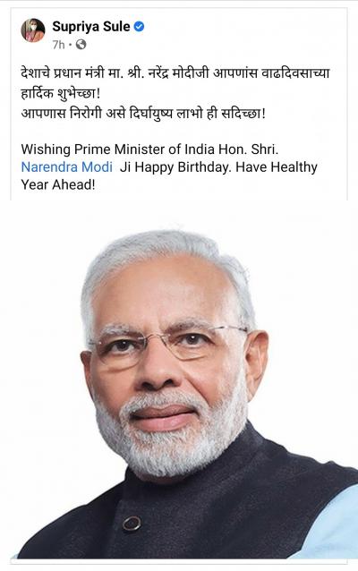 खासदार सुप्रिया सुळे यांनीही मोदींना वाढदिवसाच्या शुभेच्छा दिल्या आहेत.