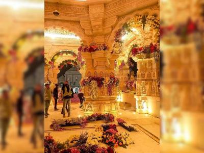 अयोध्येमधील राम मंदिरामध्ये होत असलेल्या प्राणप्रतिष्ठापना सोहळ्याची तयारी आता अंतिम टप्प्यात आहे. २२ जानेवारी रोजी रामललांच्या मूर्तीची प्राणप्रतिष्ठापना केली जाणार आहे. या सोहळ्यासाठी मंदिरामध्ये फुलांची आकर्षक सजावट करण्यात आली आहे. तसेच अयोध्येत ठिकठिकाणी जय्यत तयारी केली जात आहे.