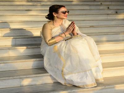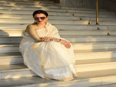 ज्येष्ठ सिने-अभिनेत्री व संसद सदस्य रेखा यांनी राजभवनातील पाय-यांवर केलं फोटोसेशन