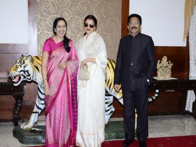 अभिनेत्री रेखा व राज्यपाल सी. विद्यासागर राव यांच्या भेटीदरम्यान त्यांच्या पत्नी सी. विनोदाही उपस्थित होत्या.