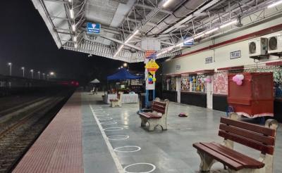 रेल्वे स्थानकावरही सामाजिक अंतर ठेऊन, त्यासाठी आखणी करुन व निर्जंतुकीकरणानंतरच प्रवाशांना रेल्वे डब्ब्यात बसविण्यात आले.