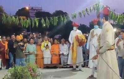 ज्योतिरादित्य यांनी शमी वृक्षाचे पूजन केले. त्यानंतर, राजवंशाचे महाराज म्हणून शमी वृक्षाला आपल्या तलवारीच्या टोकाने स्पर्श केला. त्यानंतर, तेथील जनतेनं दसऱ्याचं सोनं लुटण्यास प्रारंभ केला.