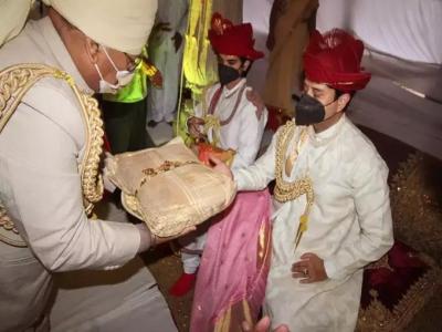ज्योतिरादित्य शिंदेंचा हा राजेशाही थाट सध्या सोशल मीडियावर चर्चेत आहे. तसेच, त्यांचे या पेहरावातील फोटोही व्हायरल झाले आहेत.