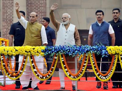 रन फॉर युनिटीला झेंडा दाखवताना पंतप्रधान मोदी आणि गृहमंत्री राजनाथ सिंह.