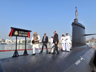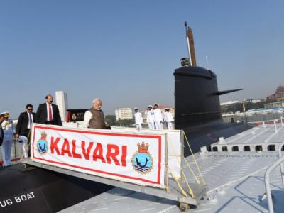 पंतप्रधान नरेंद्र मोदींनी गुरुवारी सकाळी आयएनएस कलवरी या स्कॉर्पियन पाणबुडीचे राष्ट्रार्पण केले.