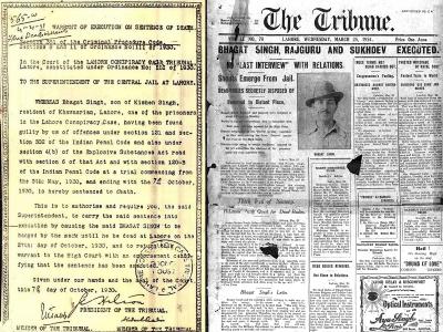 भगत सिंग यांना फाशीची शिक्षा सुनावण्यात आली होती, त्याचे अधिकृत फर्मान असलेली प्रत.