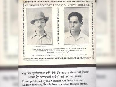 भगत सिंग यांनी केलेल्या उपोषणादरम्यानचे हे पोस्टर आहे.