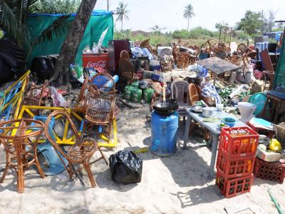 मोबार समुद्र किनारी शॅकमधील सामान अशा प्रकारे बाहेर काढून ठेवण्यात आलं. (छाया- पिनाक कल्लोळी)