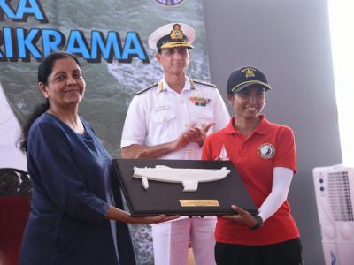 भारतीय बनावटीच्या आयएनएसव्ही ‘तारिणी’ या नौकेवरून त्या जगभ्रमंतीसाठी निघाल्या आहेत.