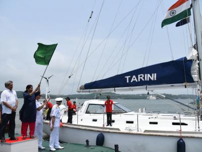 या वीरांगना आणि आयएनएसव्ही तारिणी या नौकेला हिरवा झेंडा दाखवून रवाना करण्यात आले.