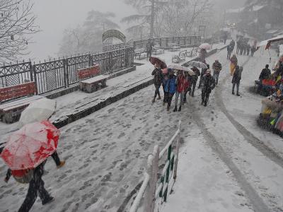 हिमाचलमध्ये दीड महिन्यानंतर मंगळवारी पाऊस पडला आणि शिमला व सिरमौरमध्ये सीजनमधील पहिली बर्फवृष्टी झाली.