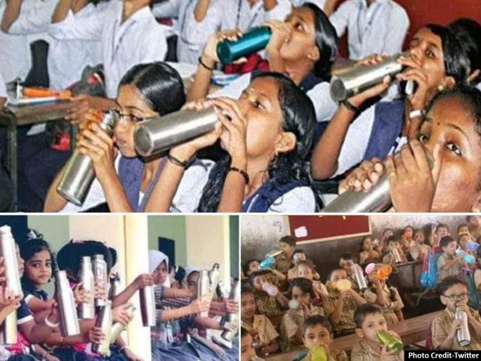 1 / 6देशातील काही शाळांनी आपल्या कार्यकुशलेतून आणि हटके अंदाजातून आपली वेगळी ओळख बनवली आहे. तर, या शाळा इतर शाळांसाठी प्रेरणास्थान बनल्या आहेत. 2 / 6आपल्या शाळेत मुलांना पाणी पिण्याची चांगली सवय लावण्याचा उपक्रम एका शाळेनं सुरू केलाय. केरळमधील या शाळेची सध्या सोशल मीडियावर जोरदार चर्चा सुरुय. 3 / 6केरळच्या धर्तीवर कर्नाटक सरकारनेही शाळांमधील मुलांना ही सेवा देण्याचे आदेश दिले आहेत. कर्नाटकचे शिक्षणमंत्री सुरेश कुमार यांनी संबंधित अधिकाऱ्यांना याबाबतचे आदेश दिले आहेत. 4 / 6 केरळमधील शाळांमध्ये शाळेतील मुलांना पाणी पिण्यासाठी घंटा वाजवून सूचना केली जाते. वॉटर ब्रेकच्या नावानं ही संकल्पन सत्यात उतरली आहे. 5 / 6शाळेच्या वेळात एक दिवसात तीन वेळा ही वॉटर बेल वाजवून पाणी पिण्यास बजावले जाते. कमी पाणी पिल्याने उद्भवणाऱ्या आजारांना रोखण्यासाठी हा उपक्रम सुरु करण्यात आला आहे.6 / 6 केरळ कर्नाटकप्रमाणे महाराष्ट्रातील काही शाळांमध्येही या उपक्रमाचे स्वागत करण्यात आले आहे.