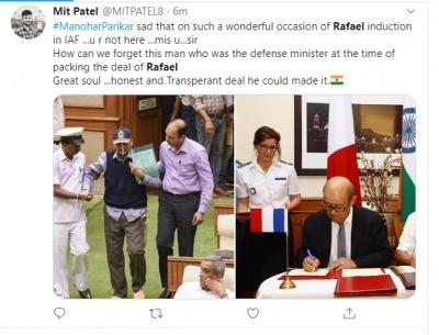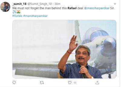 राफेलसोबतच सोशल मीडियावर आणखी एका नावाची चर्चा असून माजी संरक्षणमंत्री दिवंगत नेते मनोहर पर्रीकर यांच्या आठवणीही नेटीझन्सकडून सांगण्यात येत आहेत.