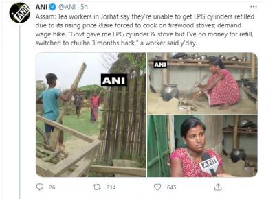आसाममधील चहाच्या मळ्यात काम करणाऱ्या कामगारांनीही आपली व्यथा मांध्यमांसमोर मांडली आहे. कोरोनामुळे हाताला दररोज काम नाही, काम मिळाले तरी पुरेपूर वेतन मिळत नसल्याचं त्यांनी म्हटलंय. जोरहत येथील चहाच्या मळ्यात काम करणाऱ्या महिलांना चुलीवर स्वयंपाक करण्याची हौस नाही, धुरापासून मुक्ती मिळाल्याचा आनंद झाला होता. पण, दरवाढीवाढीमुळे आमचा नाईलाज झाल्याचं त्यांचं म्हणणं आहे.
