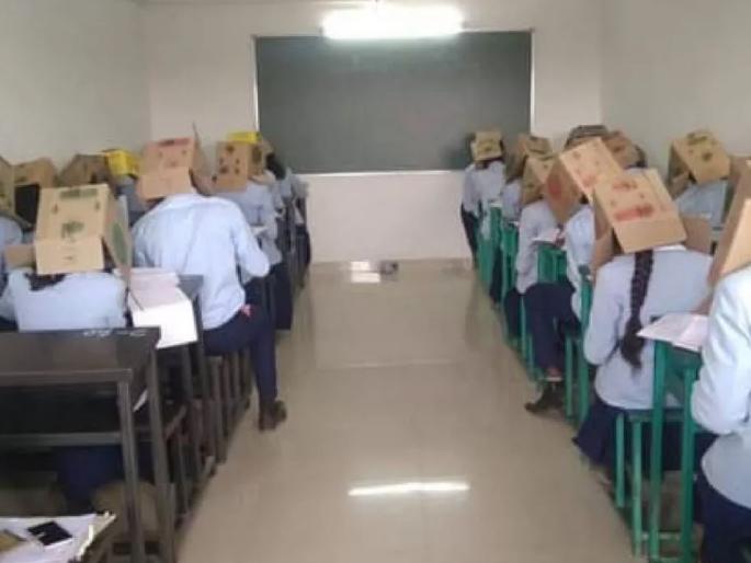 1 / 5कर्नाटकात एक अजब प्रकार समोर आला आहे. याठिकाणी असणाऱ्या पूर्वविद्यापीठ परीक्षेदरम्यान जवळपास ५० विद्यार्थ्यांच्या डोक्यावर कार्डबॉक्स ठेऊन परीक्षा द्यावी लागली. हावेरी जिल्ह्यातील ही घटना आहे. 2 / 5हावेरी जिल्ह्याचे उपजिल्हाधिकारी यांनी डीडीपीआयला या प्रकरणावर स्पष्टीकरण मागितलं आहे. कॉपी रोखण्यासाठी हा प्रकार केल्याचं बोललं जात आहे. 3 / 5शुक्रवारी कॉलेजमध्ये परीक्षा देणाऱ्यांचा व्हिडीओ व्हायरल झाल्यानंतर ही बाब समोर आली. हे विद्यार्थी अर्थशास्त्र आणि रसायन विज्ञानाचा पेपर देत होते. 4 / 5तसेच या कार्डबॉक्सला मुलांना लिहिण्यासाठी दिसावं आणि श्वास घेता यावं एवढं कापण्यात आलं होतं. या कार्डबॉक्समुळे विद्यार्थ्यांना आजूबाजूला बघता येणं शक्य नव्हतं. 5 / 5मात्र अशाप्रकारे विद्यार्थ्यांसोबत प्रकार घडल्याने राज्यात विरोधकांनी आवाज उठविला. मुलांसोबत केलं जाणारं कृत्य अयोग्य आहे याबाबत योग्य ती कारवाई करु असं आश्वासन शिक्षणमंत्री एस. सुरेश कुमार यांनी केलं आहे.