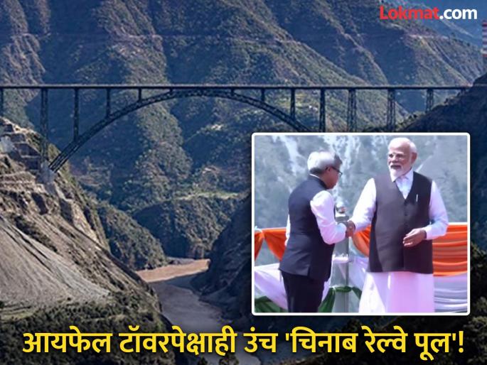 1 / 8जगातील सर्वात उंच असलेला हा पूल चिनाब नदीच्या काठावर असलेल्या या दोन गावांच्यामध्ये आहे. चिनाब रेल्वे पुलाच्या एका टोकाला टोक कौडी आहे, तर दुसऱ्या टोकाला बक्कल गाव आहे. पंतप्रधान मोदी यांच्या हस्ते उद्घाटन झाल्यानंतर, या पुलावरून वंदे भारत ट्रेन धावण्यास सुरुवात होईल.2 / 8या रेल्वे पुलाच्या बांधकामात विशेष तंत्रज्ञानाचा वापर करण्यात आला आहे. रेल्वे मंत्री अश्विनी वैष्णव म्हणाले की, हा पूल ताशी २६० किलोमीटर वेगाने वाहणाऱ्या वाऱ्यांना सहज तोंड देऊ शकेल, असा डिझाइन करण्यात आला आहे. हा पूल भूकंपाच्या झोन पाचमध्ये येत असल्याने, त्याची रचना करणे ही एक गुंतागुंतीची प्रक्रिया होती.3 / 8चिनाब रेल्वे पूल नदीच्या पात्रापासून ३५९ मीटर उंचीवर आहे. तो पॅरिसमधील आयफेल टॉवरपेक्षा सुमारे १.३ किलोमीटर लांब आणि ३५ मीटर उंच आहे. पोलीस कटरा ते बनिहाल या १११ किलोमीटरच्या मार्गावरील हा एक महत्त्वाचा दुवा आहे.4 / 8काश्मीरला देशाच्या उर्वरित भागाशी रेल्वेने जोडण्याच्या महत्त्वाकांक्षी प्रकल्पाचे काम २०१७ मध्ये सुरू झाले होते. याआधी भूगर्भीय, स्थलाकृतिक आणि हवामानविषयक आव्हानांमुळे प्रकल्प पूर्ण करण्याची अंतिम मुदत अनेक वेळा वाढवण्यात आली, ज्यामुळे त्याची किंमत ४१,००० कोटी रुपयांपेक्षा जास्त झाली.5 / 8चिनाब रेल्वे पूल मजबूत करण्यासाठी खूप गोष्टींची तरतूद करण्यात आली आहे. या पुलाचा पाया फुटबॉल मैदानाच्या अर्ध्या भागाइतका आहे. त्याच्या बांधकामात ३०००० टन स्टील वापरण्यात आले आहे.6 / 8चिनाब रेल्वे पुलाच्या सुरक्षेसाठीही विशेष व्यवस्था करण्यात आली आहे. भारतीय लष्कराचे जवान येथे कडक पहारा ठेवणार आहेत.7 / 8एकूण २७२ किमी लांबीच्या यूएसबीआरएल प्रकल्पापैकी २०९ किमी लांबीचे काम विविध टप्प्यात पूर्ण झाले आहे. ४६ किमी लांबीचा सांगलदान-रियासी विभाग देखील गेल्या वर्षी जूनमध्ये पूर्ण झाला होता, तर रियासी आणि कटरा दरम्यानचा उर्वरित १७ किमीचा भाग अखेर गेल्या वर्षी डिसेंबरमध्ये पूर्ण झाला.8 / 8चिनाब रेल्वे पूल पाहण्यास जितका भव्य आहे तितकाच तो मजबूत आहे. या फोटोंमध्ये त्याची भव्यता स्पष्टपणे दिसून येते.