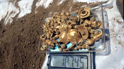 गुरुवारी एका ओसाड जमिनीच्या सपाटीकरणाचे काम सुरु असताना मातीतून सोन्याचे दागिने पडू लागल्याचा प्रकार घडला.