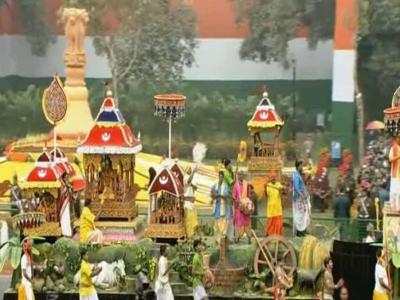 प्रजासत्ताक दिनाच्या संचलनात सहभागी झालेला ओदिशा राज्याचा चित्ररथ