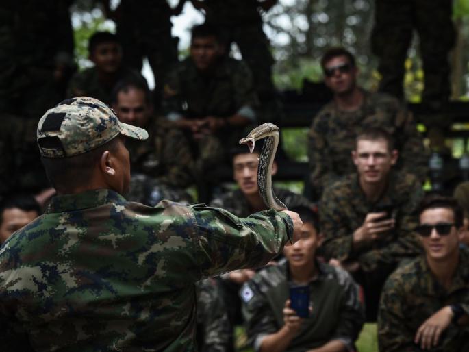 1 / 6कोबरा गोल्ड ही आशियातील सर्वात मोठी लष्करी कवायत आहे. या लष्करी कवायतींमध्ये अमेरिका, थायलंड आणि अन्य देशातील कमांडोज सहभागी होतात. 2 / 6थायलंडच्या किनारी भागात 10 दिवस चालणाऱ्या या संयुक्त सराव कवायतींमध्ये कमांडोजना 'जंगल सर्व्हाव्हयल प्रोग्राम' अंतर्गत अत्यंत बिकट परिस्थितीत जिवंत राहण्याचे प्रशिक्षण दिले जाते. 3 / 6यावेळी थायलंडच्या लष्करी अधिकाऱ्यांनी कमांडोजना प्रशिक्षण दिले. विंचू आणि सापाच्या शरीरातील विष काढून त्यांना कसे खाता येईल, याविषयी कमांडोजना माहिती देण्यात आली. 4 / 6जंगलात अडकून पडल्यानंतर कोणत्या वनस्पतींचा अन्न म्हणून वापर करता येईल किंवा पाणी कसे शोधायचे,याचे धडेही कमांडोजना देण्यात आले.5 / 6जंगलात असताना काय खावे किंवा काय खाऊ नये, याचे ज्ञान असणे अत्यंत गरजेचे असल्याचे लष्करी अधिकाऱ्यांनी सांगितले. 6 / 6या लष्करी कवायतींमध्ये अमेरिकेचे 6800 सैनिक सहभागी झाले होते.