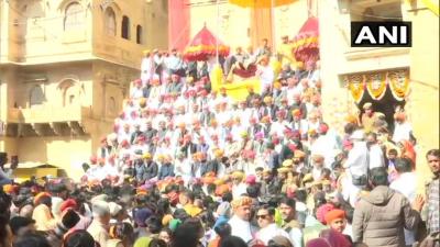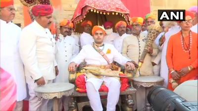 जैसलमेरमधील सोनार दुर्ग किल्ल्यात चैतन्य राज सिंह हे रीतीरिवाज, धार्मिक परंपरा आणि जयजयकारादरम्यान, राजसिंहासनावर बसले.