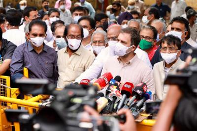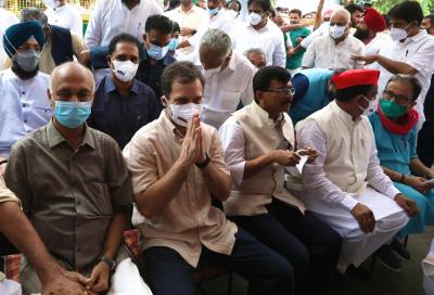 विशेष म्हणजे या आंदोलनात संजय राऊत हे दोन्ही फोटोंमध्ये राहुल गांधींच्या अगदी जवळ दिसून येत आहेत. एकीकडे राहुल गांधींच्या शेजारी बसले आहेत, तर दुसरीकडे त्यांच्या बाजूला उभारलेले दिसतात.